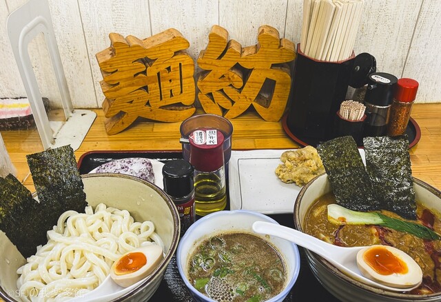 大野原にある麺紡さん。接客がとにかく丁寧で明るくアットホームな雰囲気の素敵なお店です。もちもち食感の喉越しの良い麺は老若男女問わずオススメできる麺です。ノーマルもオススメですが、創作系うどんがとにかく美味しい。イチオシはつけ麺『うおとりとん』です。三陸ワカメを使ったワカメの天麩羅も他店では味わえない逸品です。