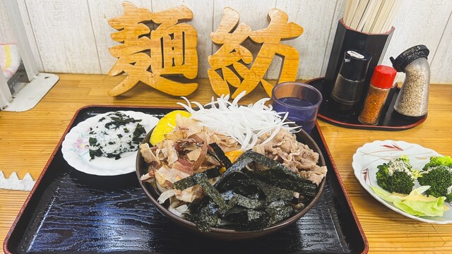 麺紡スペシャルは大(2玉)以上の麺に肉増し。米をトッピングが完成形の最低条件です。