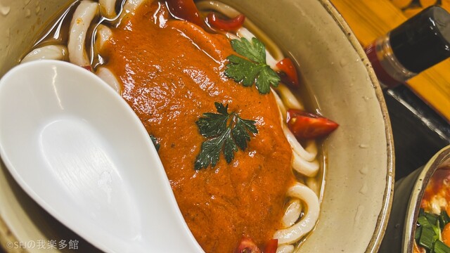 オイル好き、アジアンスパイス好きな方にお勧めのおうどんです。