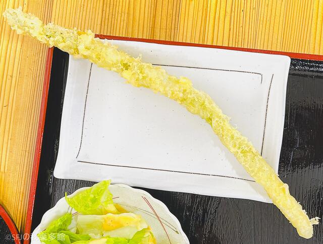 ちょっと掻き混ぜたのは……トマトベースのソースをアスパラ天につけて食べるため。