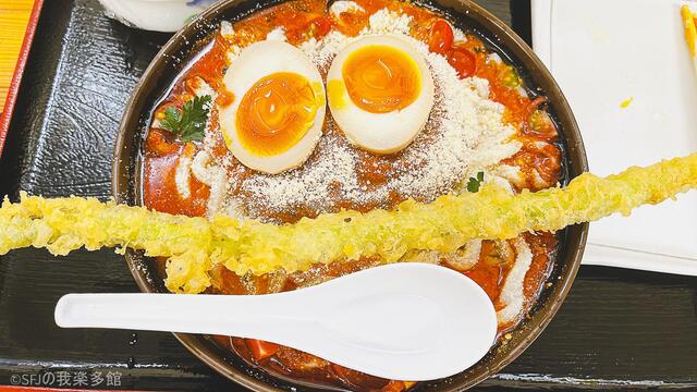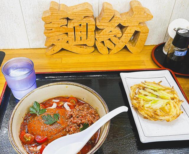 麺紡さんの冷製トマトぶっかけ系にはタマネギ天がベストマッチ!(個人の意見です)