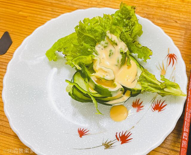 ちょっと時間が掛かるということで、無料の野菜サラダを頂き、待ちます