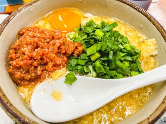 ピリ辛肉味噌とトマトソース……旨味しかない特製ソースに、半熟度合いが100点満点の半熟煮卵