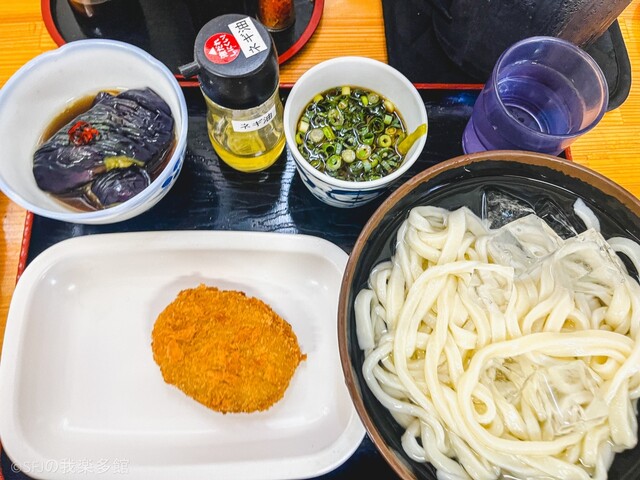 涼と塩分を冷やしうどんから頂き……カロリーをオプションで頂きまして……夏バテも解消です。