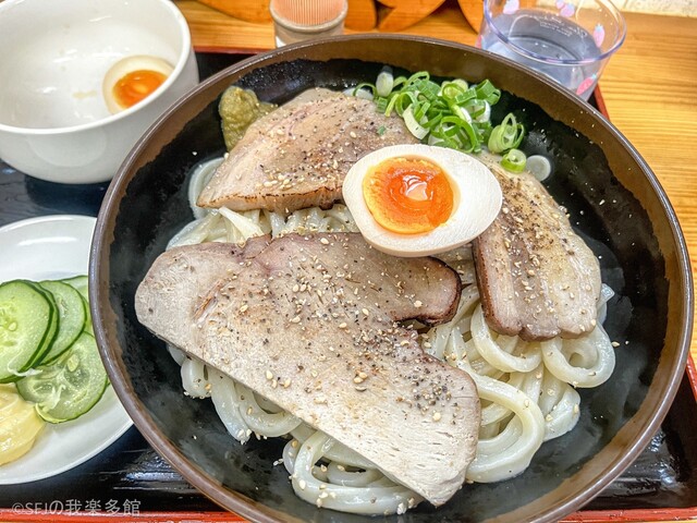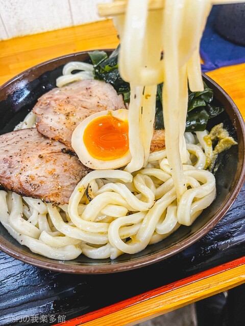 昨日の写真の使い回しじゃねーの?とか言われないためにも……半熟煮卵追加で更に……映えるうどんに。(半熟煮玉子食べたかっただけ)