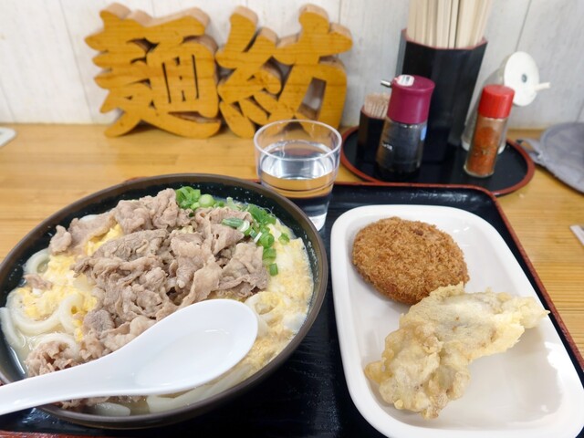 『肉たまごとじうどん』&『ミンチカツ』&『鶏天』