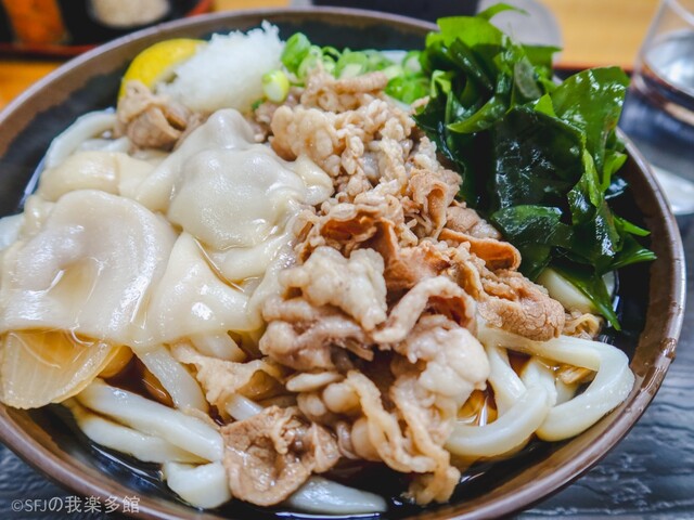 あま~いふわっふわの卵とじに、これまたふわっふわの牛肉がところ狭しと乗ってる旨味と優しさが、ぎゅ~っと詰まったおうどん。(牛だけに)←笑うとこですよ?