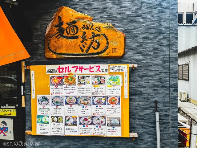 2016年10月創業のセルフうどん店 【麺で人と人の絆を紡いでいく】という店主の思いが詰まった店名。