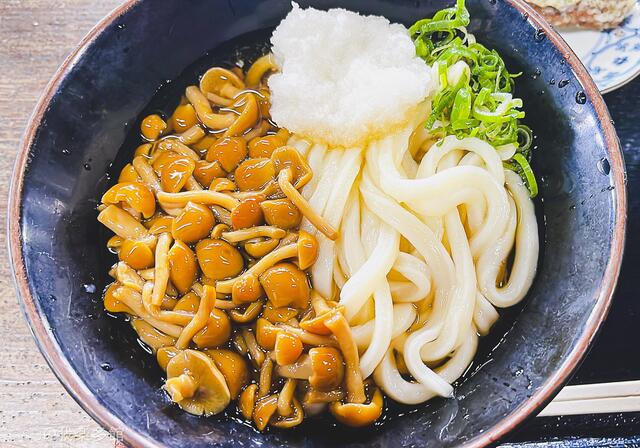 おろしとなめこを纏ったうどんの喉越し。