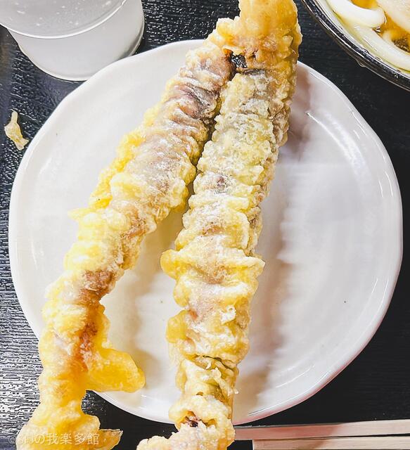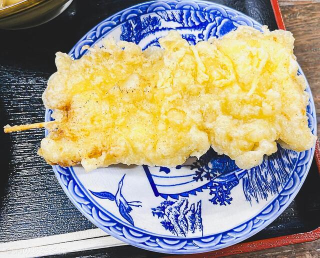ならば……ということで、『肉味噌まぜうどん』も頂きました。あとはなめこおろしぶっかけうどんにベストマッチな『鶏天』と一度食べてみたかった(けど、早朝はなかなか出会えない)ヨコクラ印の丸天を。