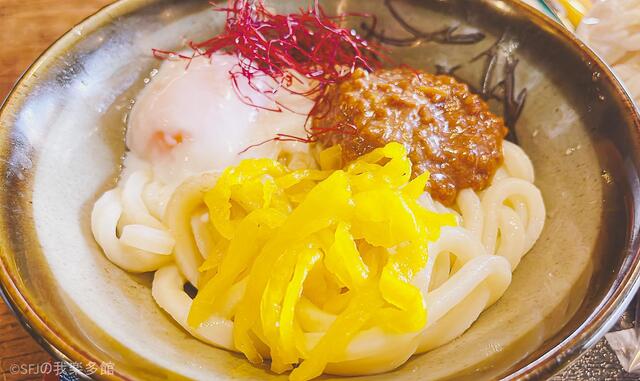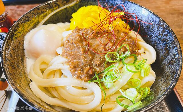 一口食べる度に美味しいの種類が変わる素敵なまぜうどんです。
