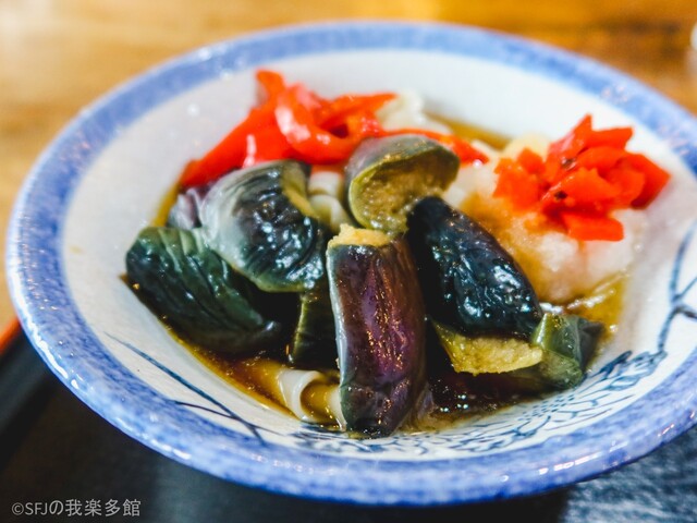 焼き茄子がピクルスのような酸味がある爽やかな味付け。