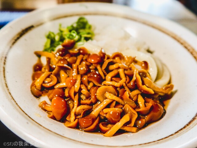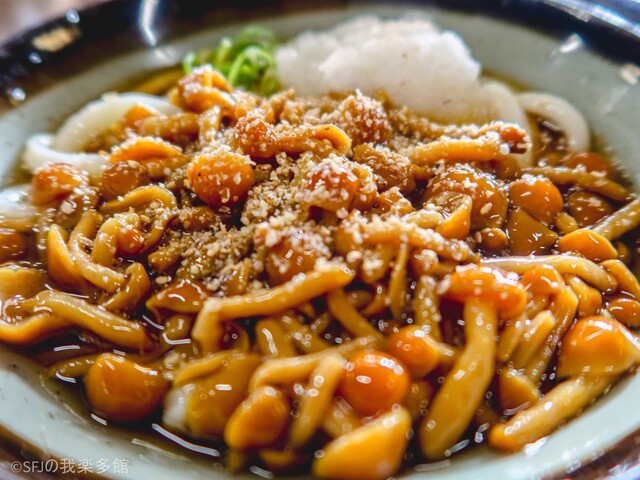 ぷるっぷる、ぬっめぬめなめこを纏った麺は、他のメニューでは味わえない独特の、クセになる事間違い無しです。