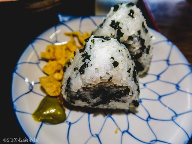 そして麺が無くなった冷や掛け出汁におむすび投入。