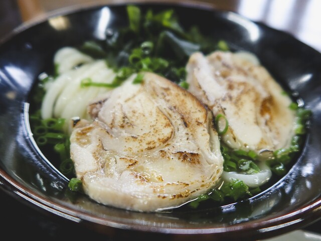 鶏チャー葱炙油うどん 鶏チャー増し増し温玉トッピング