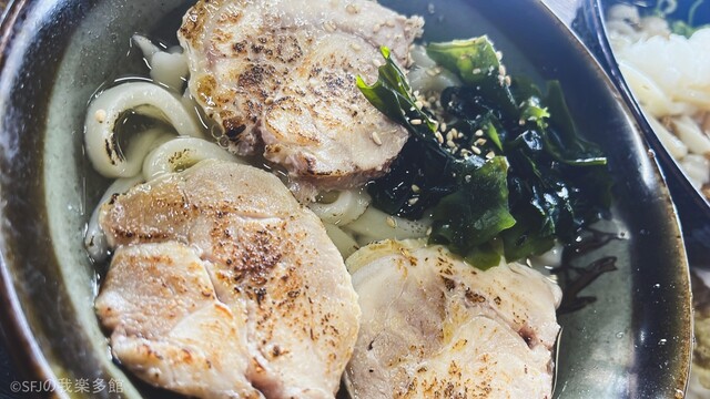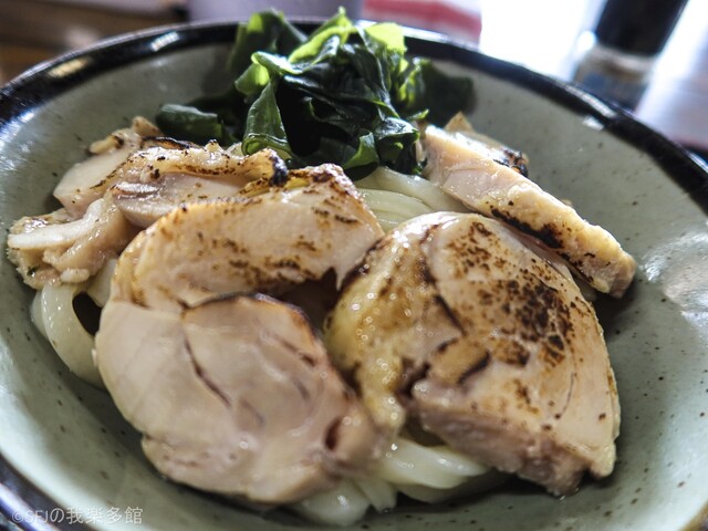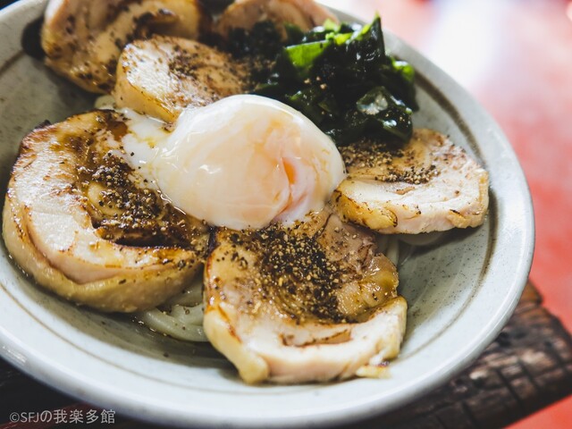 そして、鶏肉で元気チャージできる『鶏チャー葱炙油うどん』ですが、今日は裏メニュー叉焼増し温玉載せで頂きます。