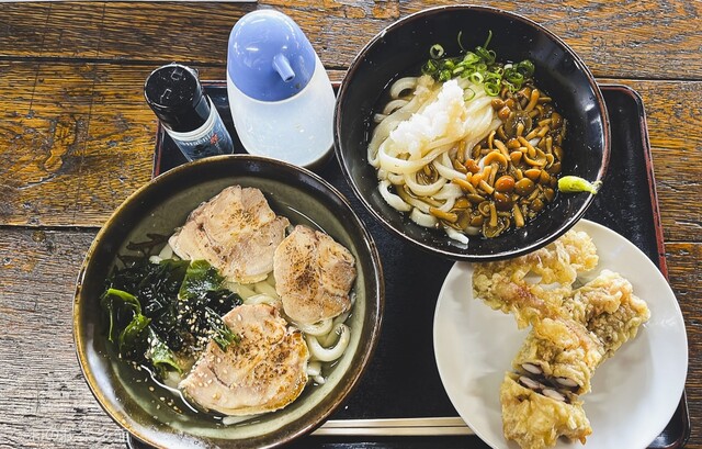 『なめころしぶっかけうどん』『鶏チャー葱炙油うどん』『鶏天』