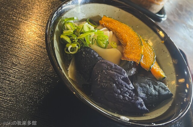 茄子ともカボチャともよく合います……というか、きしめんとぶっ掛け出汁に合うように茄子とカボチャが程よく味付けされてて……抜群に美味しいんです。