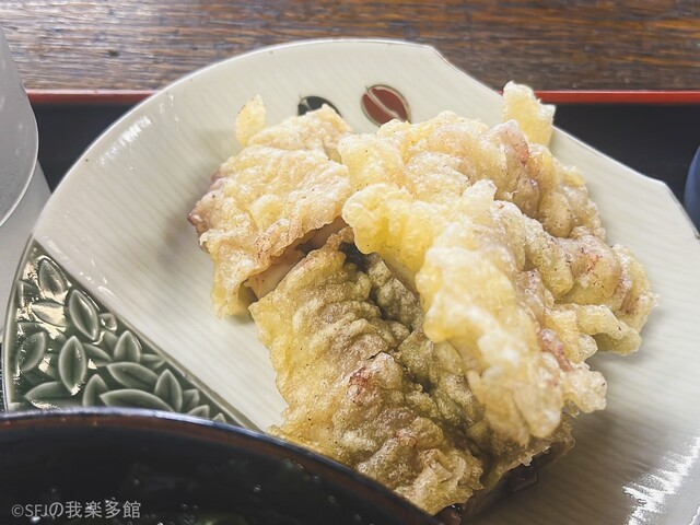 なめこおろしスープにはイカしたゲソ天か、トリあえず間違いない鶏天がお薦めです。(うまい事言ったつもり)