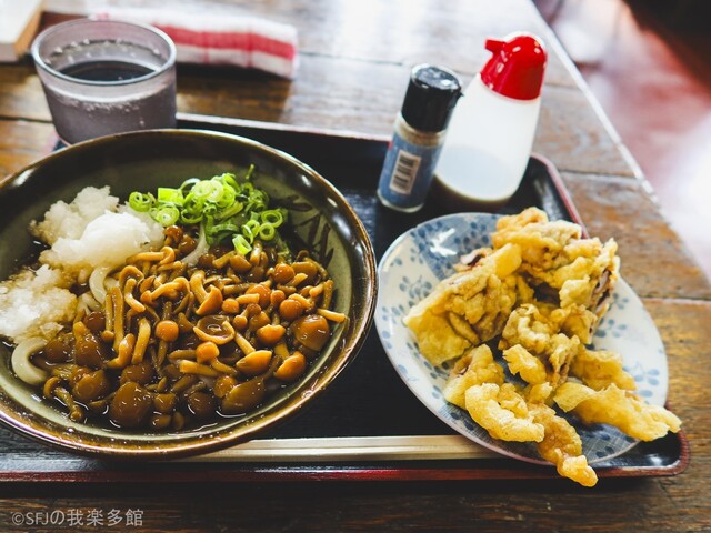 大きな食べ応えある鶏天の衣が柔くなり、鶏肉になめことぶっかけ出汁大根おろしとねぎと山葵が混ざった特性天つゆが絡むと絶品この上なし!