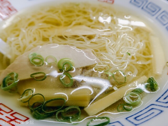 透き通った綺麗なスープに細いストレート麺。