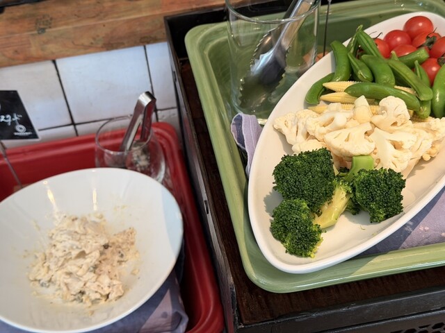 ランチビュッフェでハーブ海老とキャベツの味噌クリーム