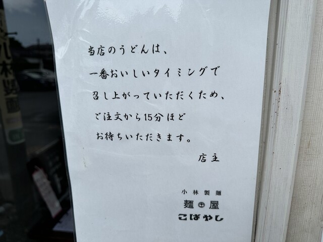 ちょっと前の話なんですけど、相方さんと2人でうきは市方面に麺活に出かけまして、最初に伺ったお店がこちら、小林製麺 麺屋こばやし。