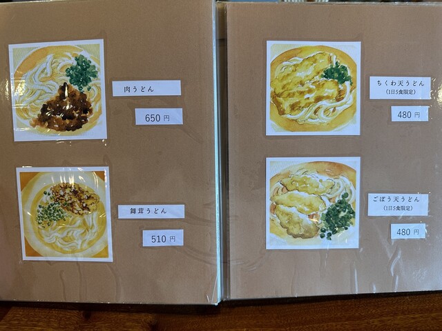うどんは讃岐系と同じくぶっかけや釜玉もあるしひやひややひやあつ、あつあつ(かけうどんの麺とスープを熱いか冷たいか指定して注文出来る)も出来て、でも肉うどんやごぼう天うどん、舞茸うどんもあって良い感じ。