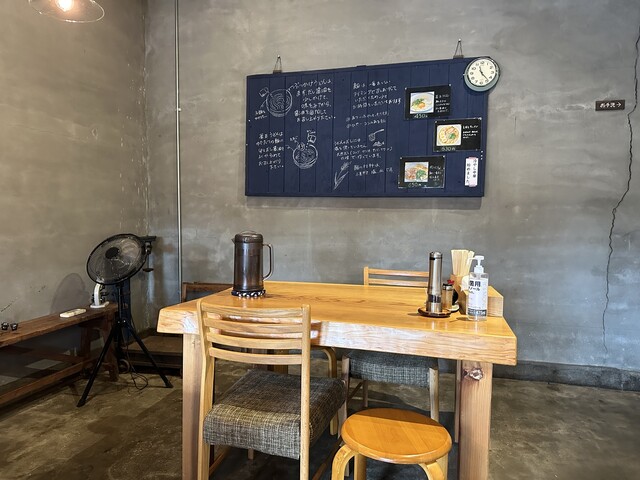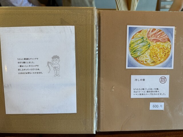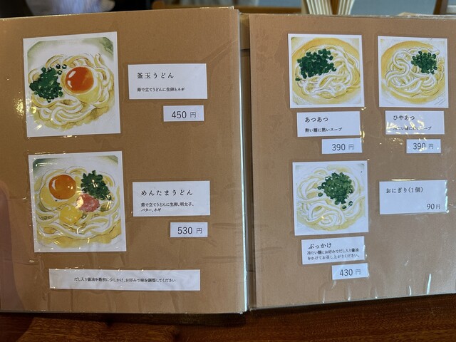 入口正面の大きなテーブルの端に座り、メニューを拝見すると、うどんとラーメン、どちらも置いてあります。