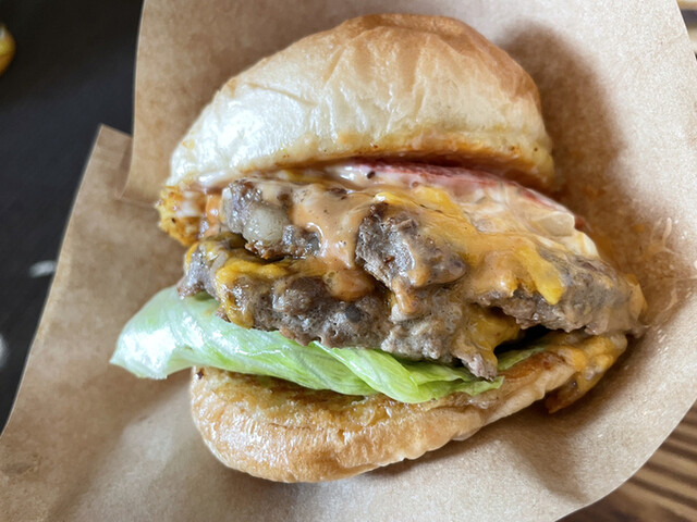 このパティが肉汁たっぷりなんだけどその肉汁が外に逃げずに留まっていて、ゴロっとした肉感と粗挽き感が同時に味わえる上に程よい下味が付いていてそのままでもめちゃくちゃ美味いし、ハンバーガーとしての全体のバランスも良くて、これは過去一美味いハンバーガーと言わざるをえません。