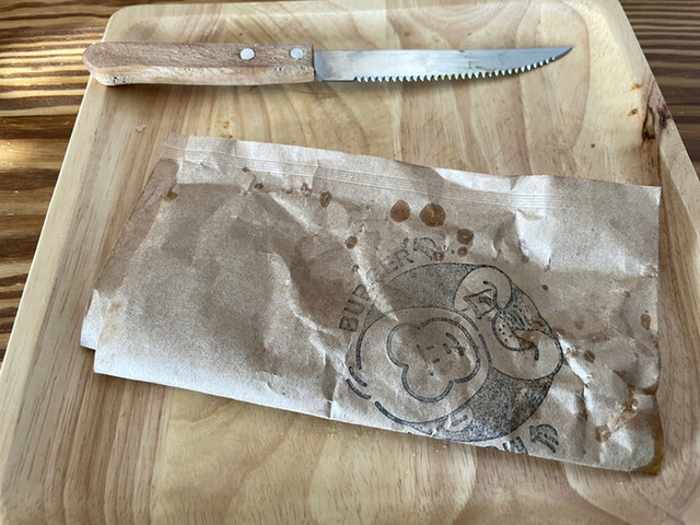 ハンバーガーの包み紙に押してあるキャラクターもかわいい。