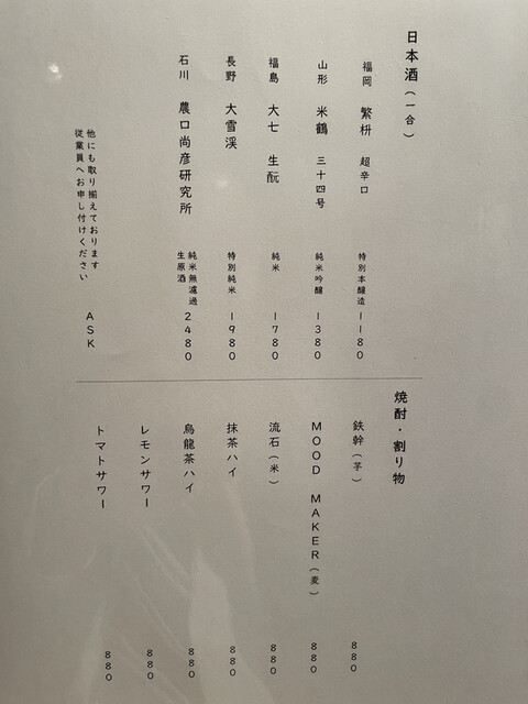 今回は事前に鮨と天冨良特上会席16,000円税込を予約して伺いましたが、オープン記念期間限定9,000円のコース、上会席12,000円、極上会席20,000円と夜は全部で4つのコースがあり、ランチは昼会席6,500円、上昼会席9,000円の二つのコースがあります。