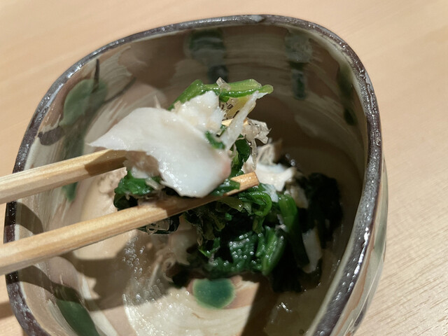 菜の花の辛し和えはそれ自体も美味しいんですが、初めて食べた珍味糸雲丹のねっとり食感と風味が良くて病みつきな味わい。