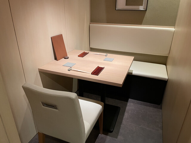 そこから右側に行くと2人から8人と広さを変えられる個室が複数有り、今回は奥の方の席にご案内して頂きました。