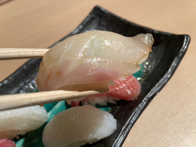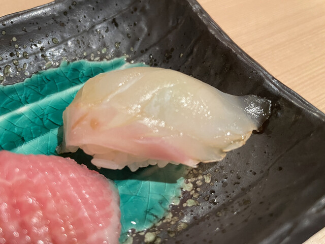 アオリイカは塩と柚子、クエと中トロは煮切り醤油、サイズがやや小ぶりでピンとしたシャリが口中でほどけてネタと絡み合い、素晴らしく美味しい!
