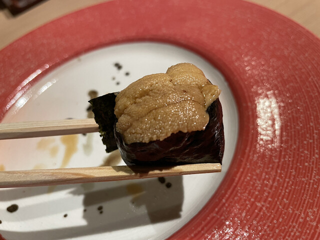 最後の鮨二貫は炙りサワラとウニ軍艦。