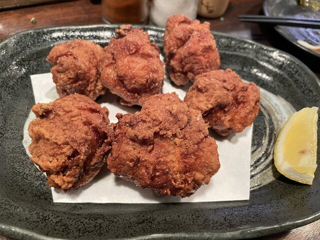 いわゆるゲンコツ唐揚げというか、しっかりタレに漬け込んだもも肉を丸めてげんこつの形にして揚げてあり、カリッとジューシーでめちゃくちゃ美味いです。