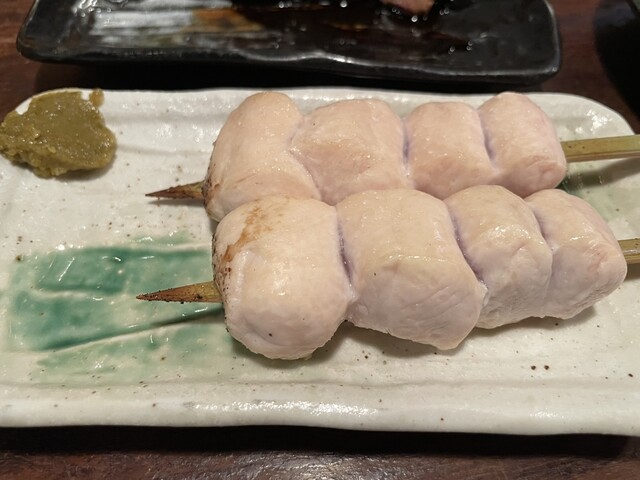むね肉ということでパサパサかと思いきや火加減がちょうどなのでしっとり感があって柔らかく、これまたむね肉の焼鳥としては過去一かも。