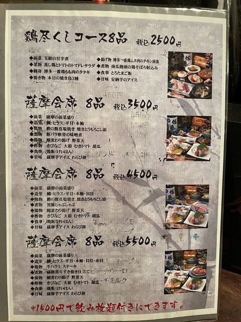 鶏飯は鹿児島県奄美大島の郷土料理なんですが、宴会のコース名で薩摩会席が出てくる辺り、オーナーさんは鹿児島のご出身かその関わりがあるのかもしれませんね。