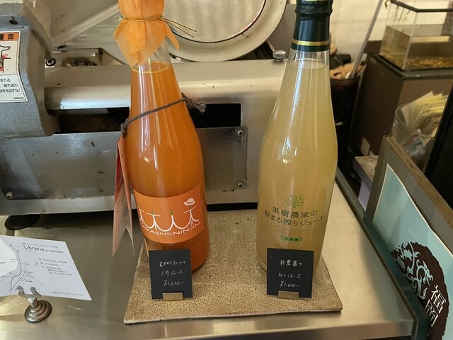 まずはレジの前に立つと果物ジュースやうどん麺、保冷バックも置いてあるのが目に付きます。