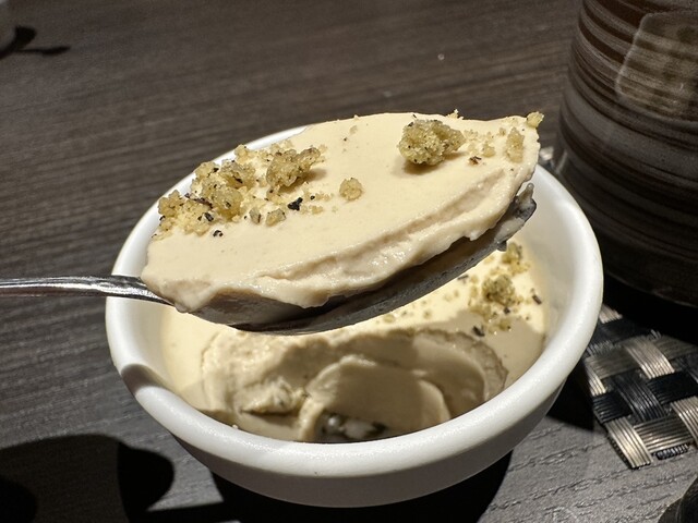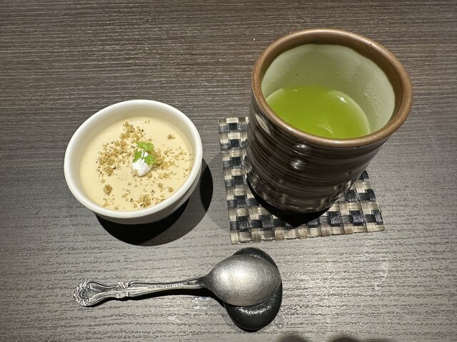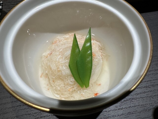 小鉢は玉子豆腐、こちらもかにの足身とほぐし身がたっぷり入った餡掛けになっていて、めちゃくちゃ蟹の旨みが感じられます。