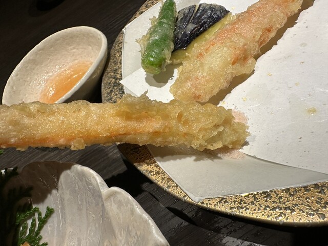 ズワイガニも天ぷら頂くと熱で甘みが増してて美味いし、ナスとしし唐も美味しいです。