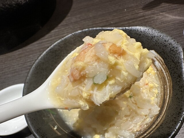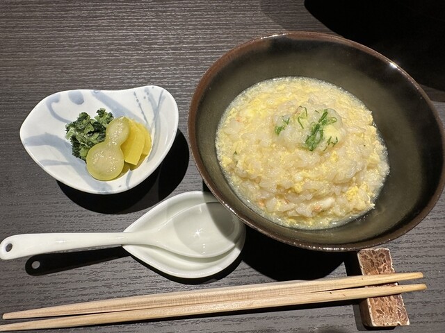 かにをしゃぶしゃぶしまくった出汁にご飯とかに身を加え玉子でフワフワにとじたかに雑炊。