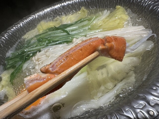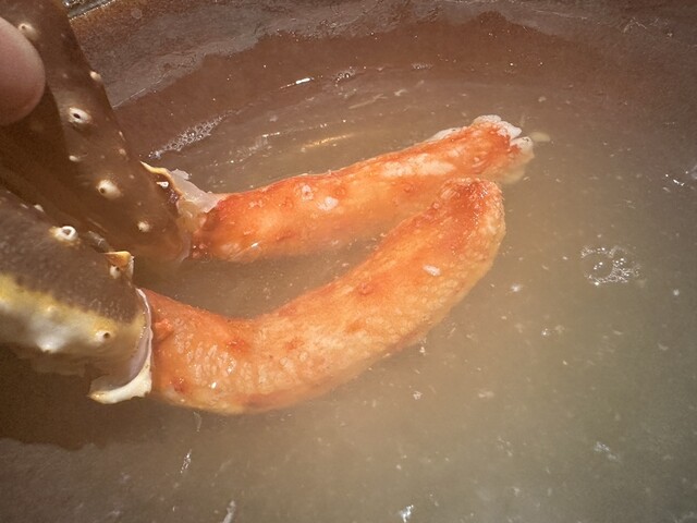 沸騰したらカニをしゃぶしゃぶして頂いていきます。
