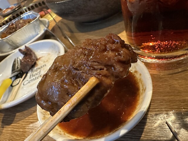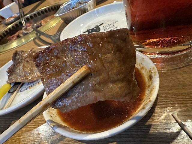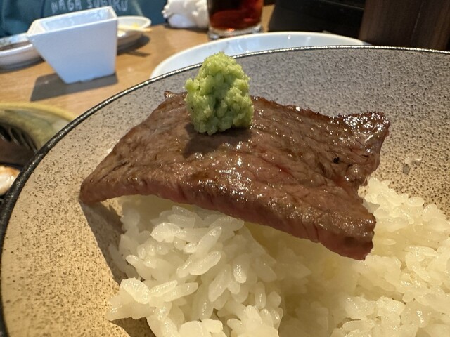 個人的にヒットしたのは塩わさび赤身肉、これが赤身でも薄くサシが入ってて柔らかく、でも赤身肉の旨味もしっかりあってめちゃくちゃ美味い!