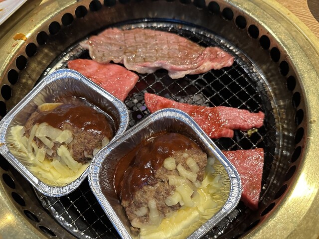 焼き網にのせて煮込むタイプなんですがデミグラスソースにチーズ、そしてタン入りの肉肉しいハンバーグでこれまた絶品な美味さ!