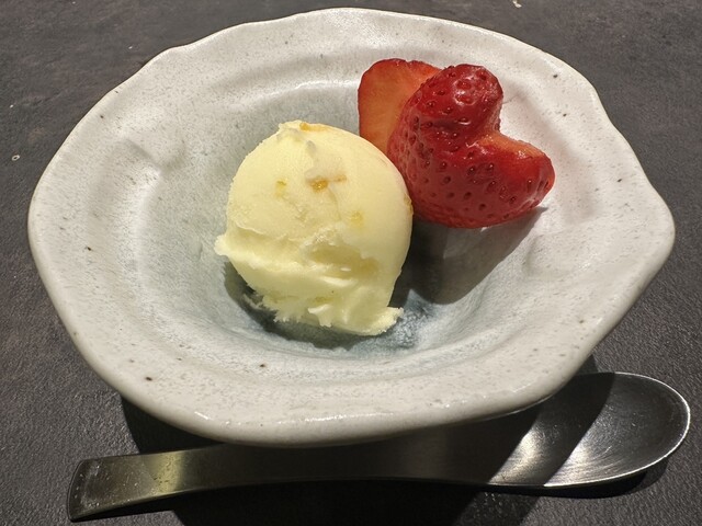 デザートはシャーベットを選べるということでゆずシャーベットにしましたが、でっかいイチゴがついてきてこれもめっちゃ甘くて美味しい(^-^)