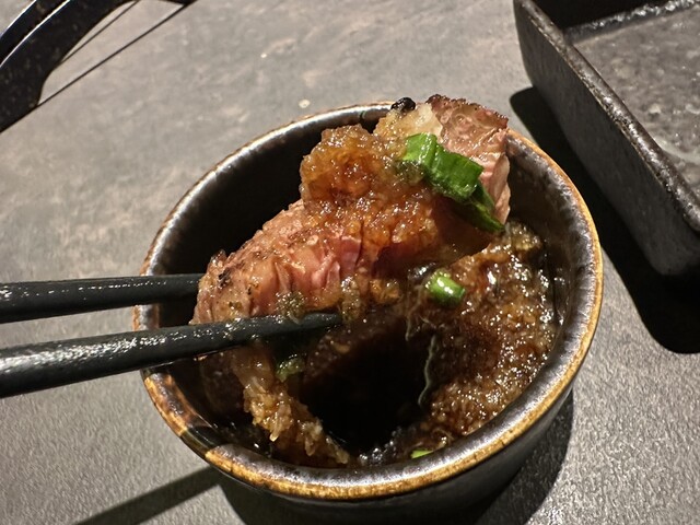 こちらはサシがしっかり入っているのでじっくり焼いた後、塩とおろしポン酢でそれぞれ頂きましたが、これまたご飯が進む!