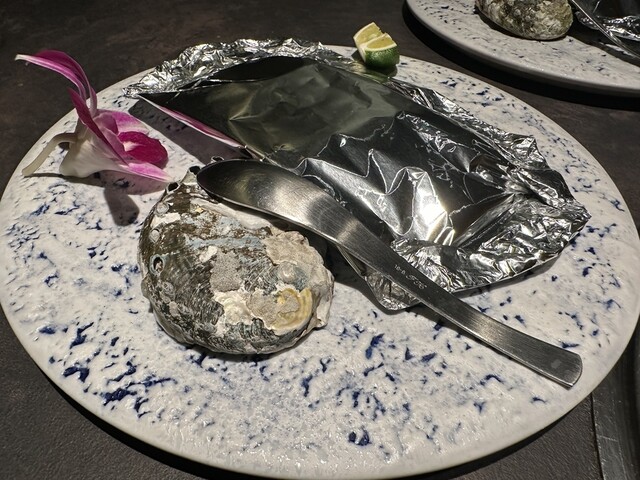 いわゆるホイル焼きでスタッフさんがそのまま焼台で焼いて、焼き上がったらハサミで切って開けた物をお皿にのせてくれます。