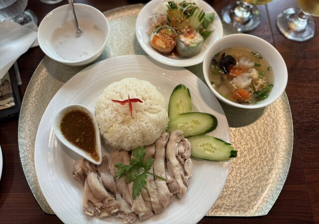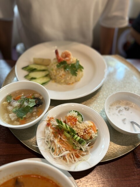 緑に囲まれた綺麗なテラスレストランで少し上品なタイ料理を頂く